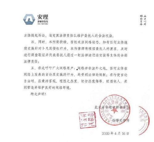 在这场风波中,律师的作用不可小觑。一方面,律师函的发出,让明星有了维护自己权益的依据;另一方面,律师的介入,也让事件的真相逐渐浮出水面。经过调查,律师发现,这位明星确实涉嫌抄袭,于是向其发出了警告。